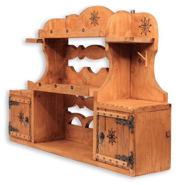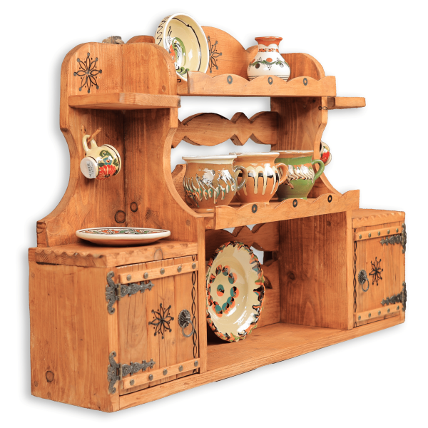 • Realizat din lemn masiv, acest blidar este finisat cu grijă pentru a îmbina estetica rustică cu funcționalitatea, totodată păstreaza meșteșugul specific satelor românești.