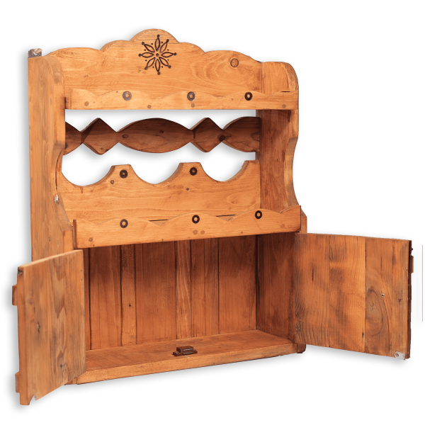 • Realizat din lemn masiv, acest blidar este finisat cu grijă pentru a îmbina estetica rustică cu funcționalitatea, totodată păstreaza meșteșugul specific satelor românești.