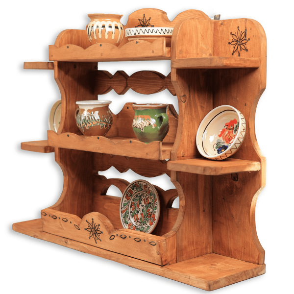 • Realizat din lemn masiv, acest blidar este finisat cu grijă pentru a îmbina estetica rustică cu funcționalitatea, totodată păstrează meșteșugul specific satelor românești.