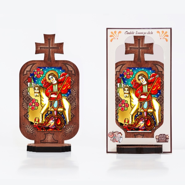 • Candela din lemn cu Icoana - Sfantul Mare Mucenic Gheorghe, realizată în Odaia Bunicii Voroneț;