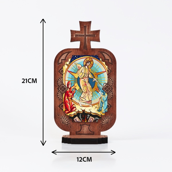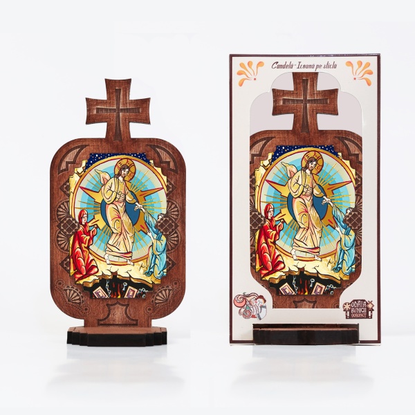 Candela din lemn cu icoana Invierea Mantuitorului Iisus Hristos - 21 cm x 12 cm