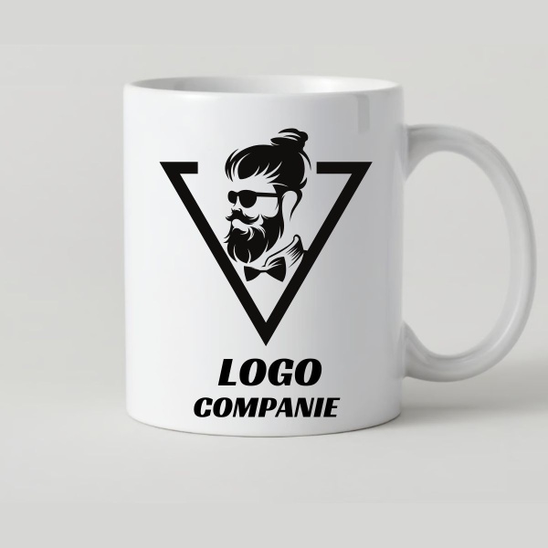 Aceasta cana alba din ceramica poate fi personalizata cu numele companiei sau propriul tau logo.