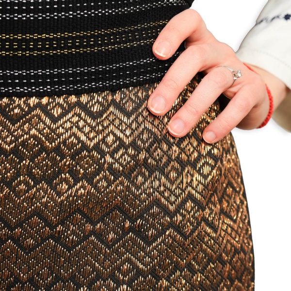 • Material- urzeală de bumbac, modelul este lucrat din mătase cu fir auriu;
