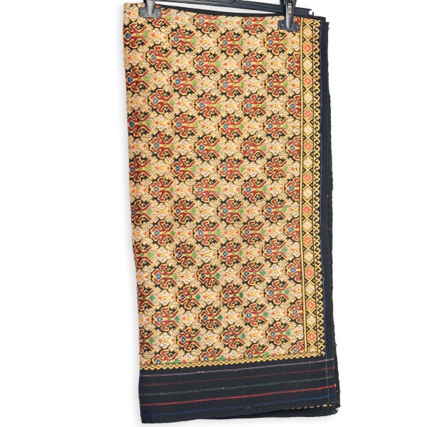 • Fotă de sărbătoare, lucrată manual în războiul de țesut, având ca fir de bază bumbacul, iar pentru partea de ornament bogat reprezentată s-a folosit fir de mătase cu un colorit cald, culorile de contrast fiind subtil reprezentate prin puncte roșii, liliacului verde.