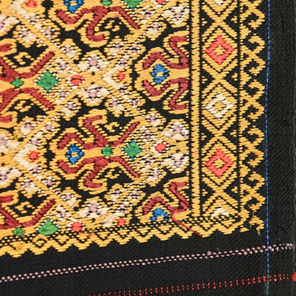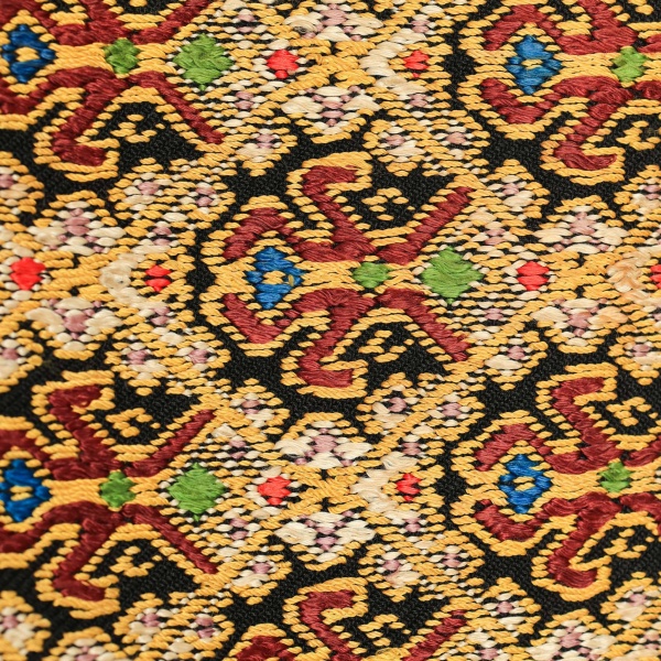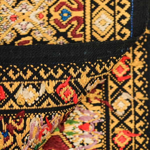 • Material- fondul negru din fir de bumbac și alesătură de mătase în diverse culori;