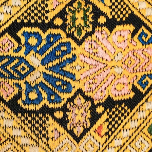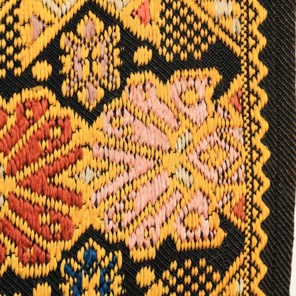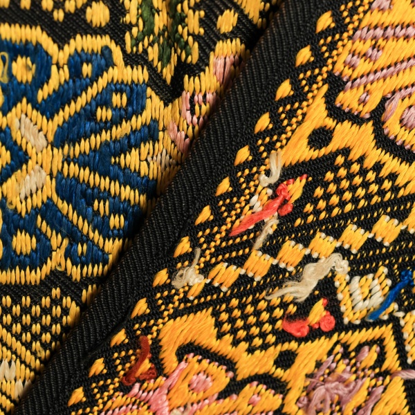 • Material- fondul negru din fir de bumbac și alesătură de mătase;