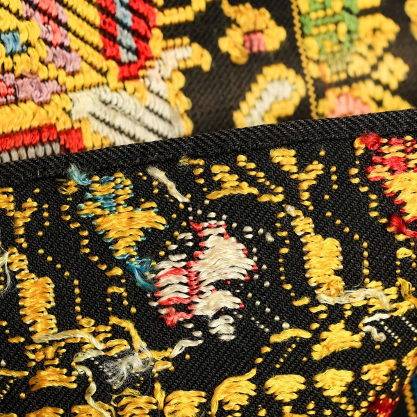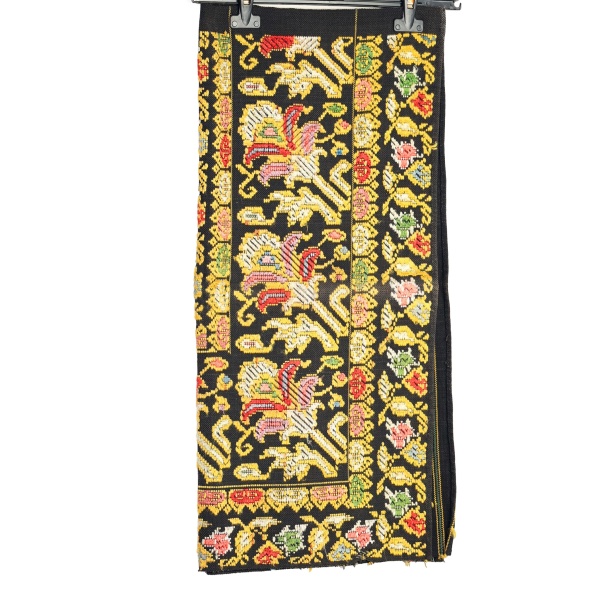 • Material- fondul negru din fir de bumbac și alesătură de mătase.