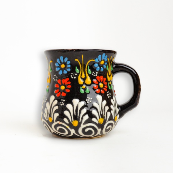 • Cană decorată din ceramică, tradițională, cu modele deosebite în relief.