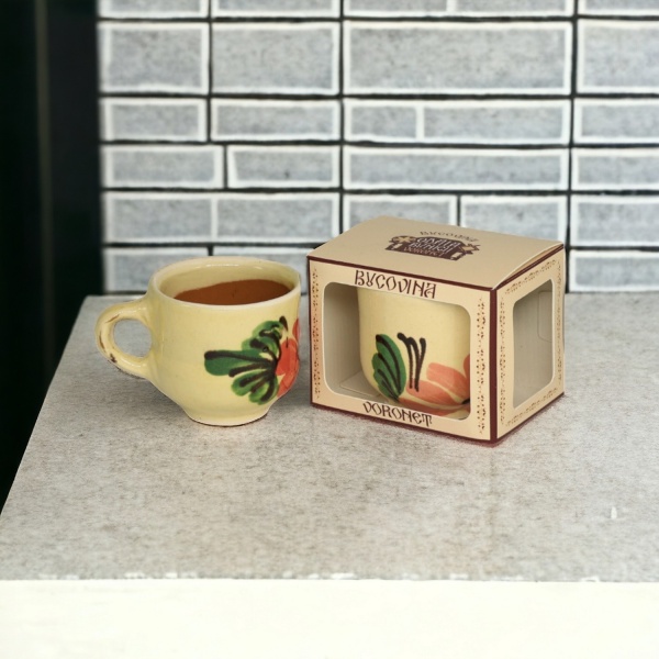• Căniță pentru țuică, decorată cu motive tradiționale românești;