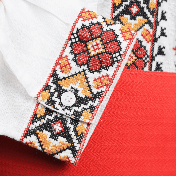• Această cămașă încrețită la gât se croia din patru pânze drepte, astfel încât să ofere lejeritate persoanei care o poartă.