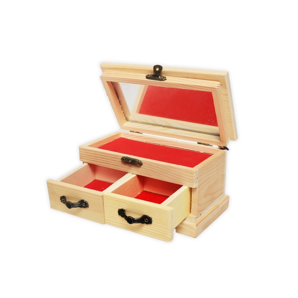 • Cutia prezintă 3 compartimente, cu sistem de închidere și o oglindă, special atașată pentru a vă putea pune bijuteriile.