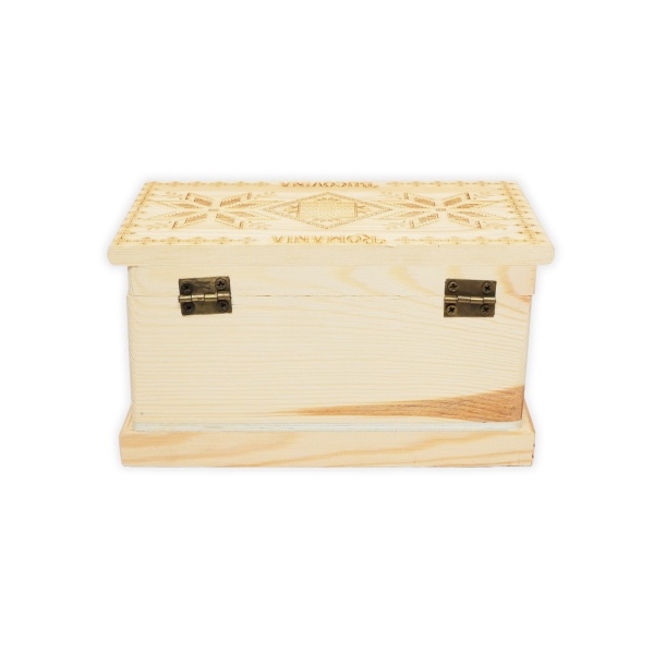 • Materialul cutiei este din lemn, cu model tradițional gravat;