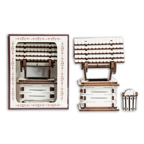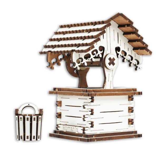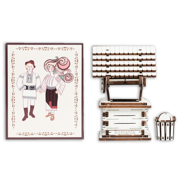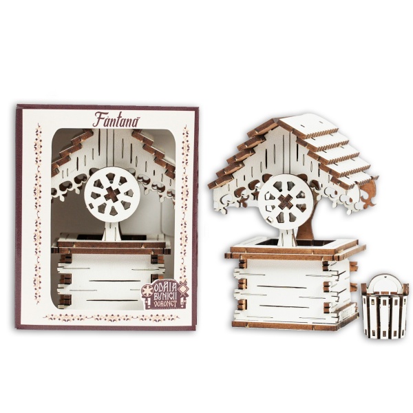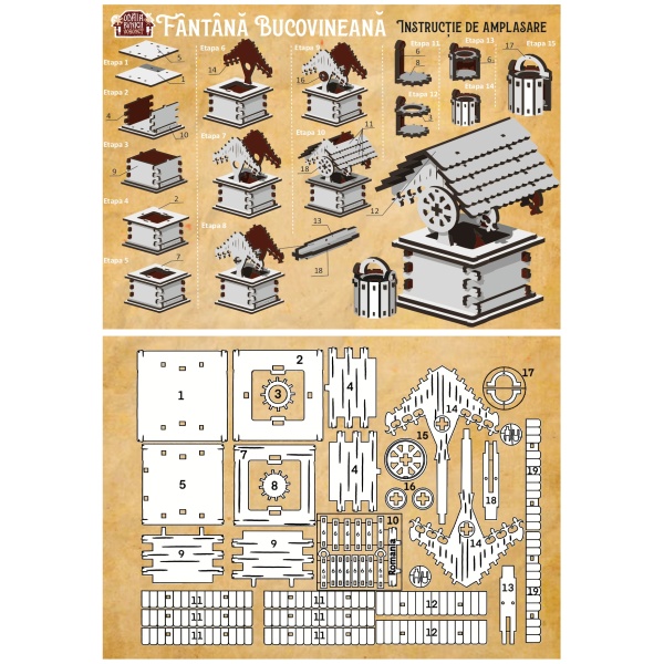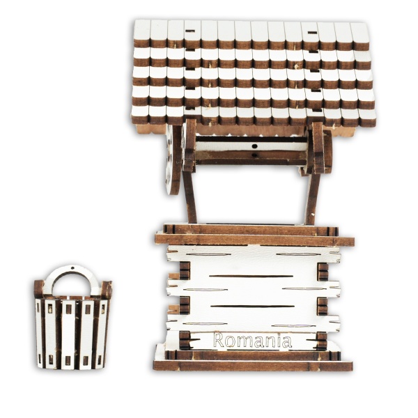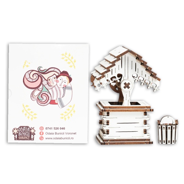 • Fântâna clasica în stil Bucovinean, ce include o găleată tradițională și detalii decorative inspirate din motivele populare specifice zonei.