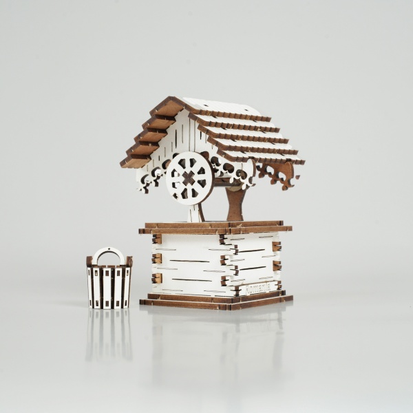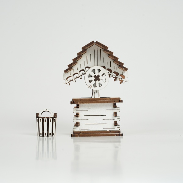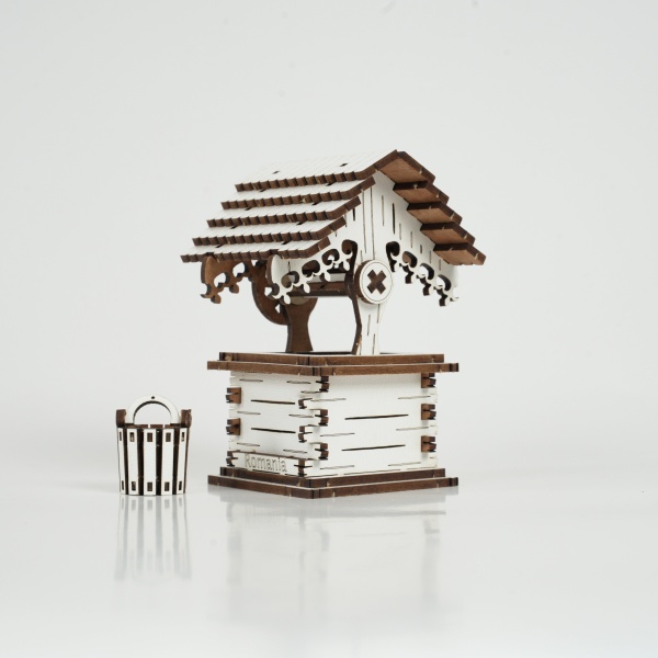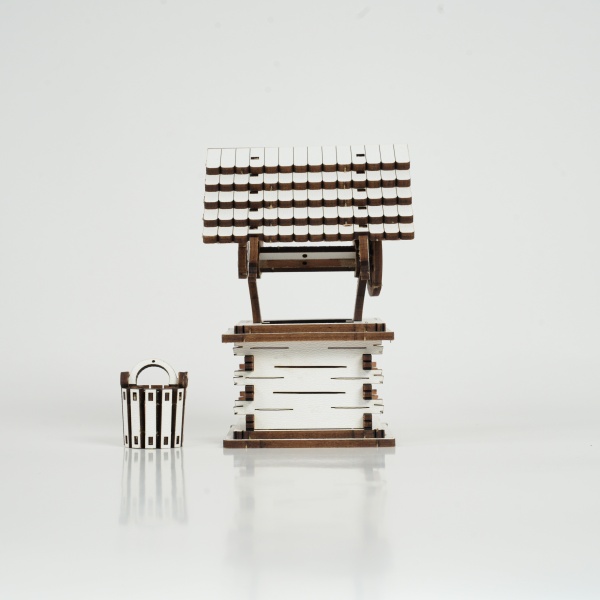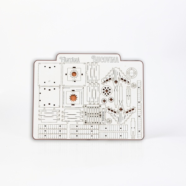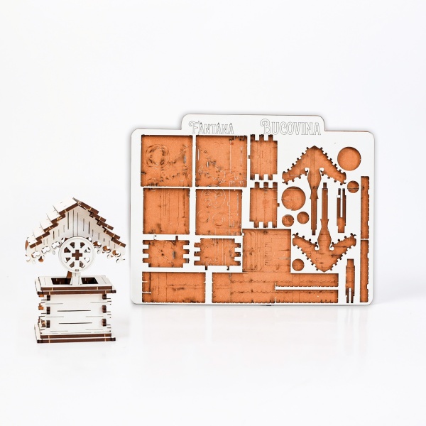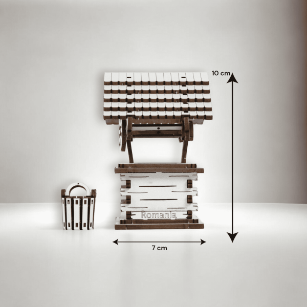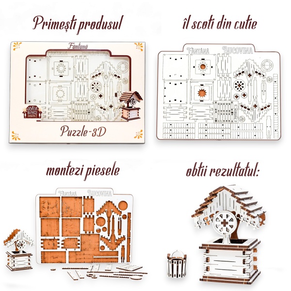 • Puzzle-ul 3D reprezinta fântâna clasica în stil Bucovinean, ce include o găleată tradițională  și detalii decorative inspirate din motivele populare specifice zonei.