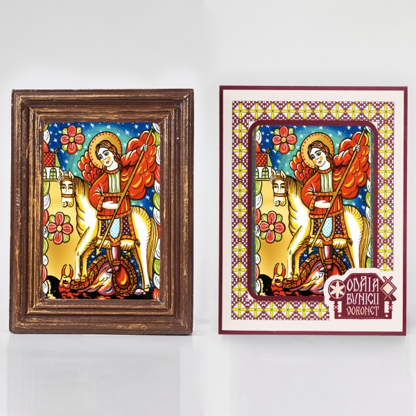 • Prin efectul de vitraliu, icoana Sfantului Mare Mucenic Gheorghe, devine și mai expresivă, sugerând lumina divină care calauzeste, intareste și lumineaza calea fiecarui crestin;