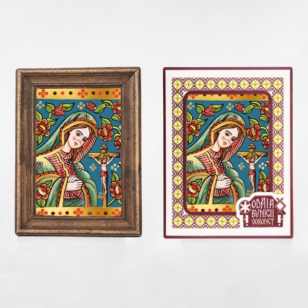 • Prin efectul de vitraliu, icoană devine și mai expresivă, sugerând lumina divină care îmbrățișează și alină durerea Maicii Domnului în timpul tânguirii sale.