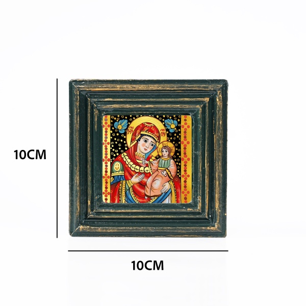 Icoana Maicii Domnului cu Pruncul Iisus Hristos (decorata pe sticla) - 10cm x 10cm
