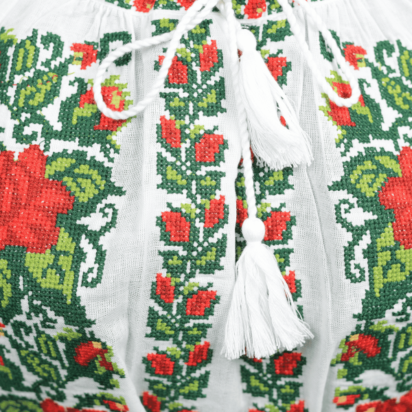 • Ie tradițională din bumbac, brodată la mașină.