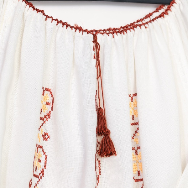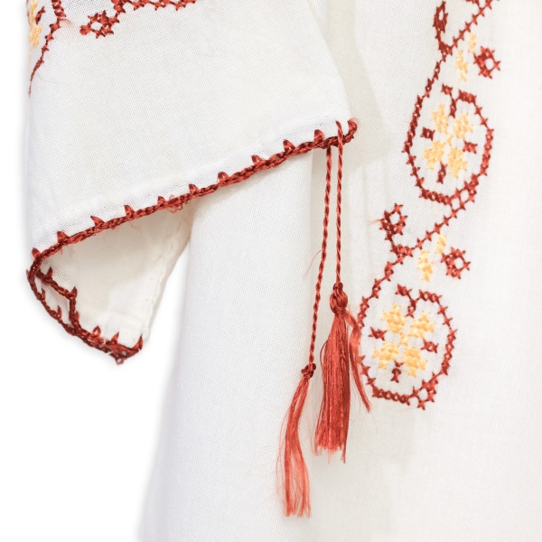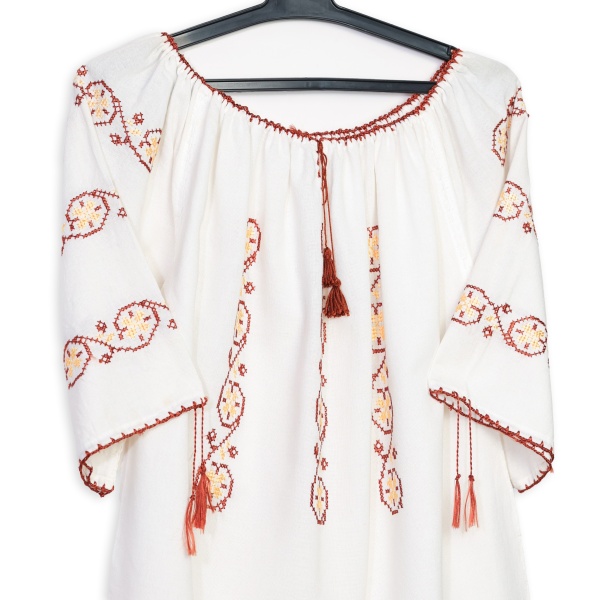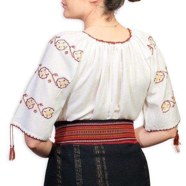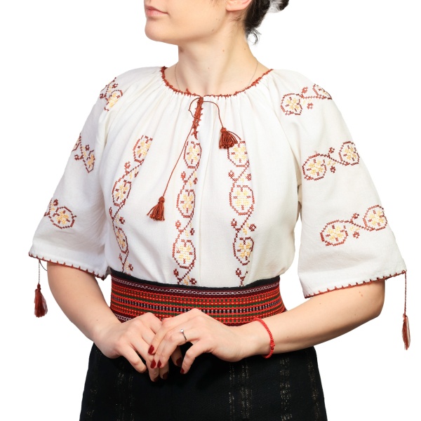 • Ie autentică din bumbac, cusută manual cu motive tradiționale;