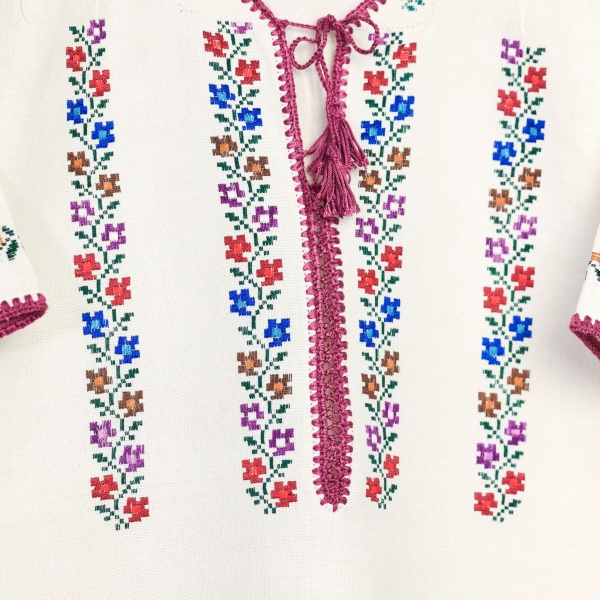 • Cămășoi de Bucovina creat din pânză de in țesută în război.