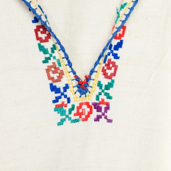 • Pânza este din in, țesută în stative și cusătură manuală cu bumbac, în tehnică " la fir".