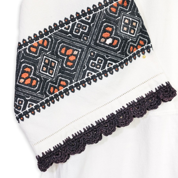 • Gulerul cămeșii este croșetat manual, și aplicat sub formă de guleraș.
