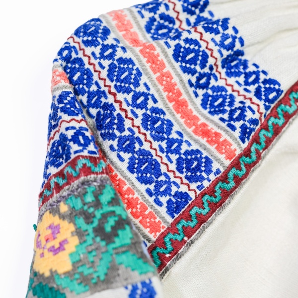 • Ie tradițională din bumbac, cu mărgele cusute manual;