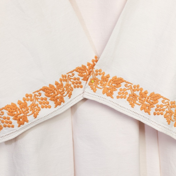 • Mânecile și poalele sunt frumos împodobite la fir cu boabe de struguri și frunze de viță-de-vie.