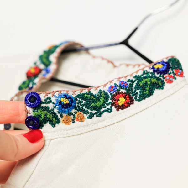 • Iile sunt cusute manual, confecționate din in;