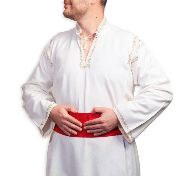 • Cămașă pentru bărbați, cusută manual pe pânză de bumbac țesută în casă.