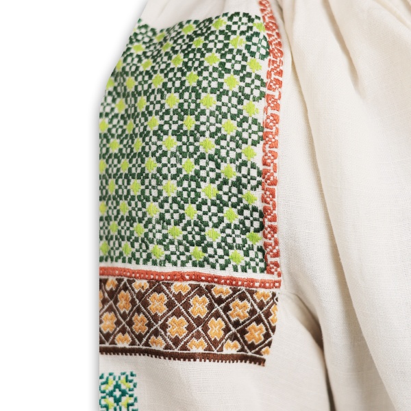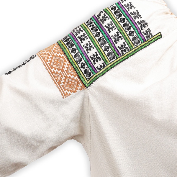 • Cămașă de Bucovina mijlocită cu fir de bumbac pe pânză țesută în stative;