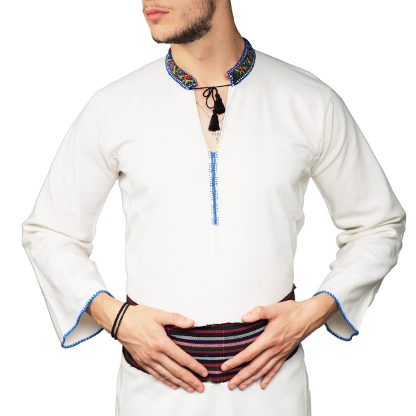 • Cămașă pentru bărbați, cusută manual pe pânză de bumbac țesută în casă;