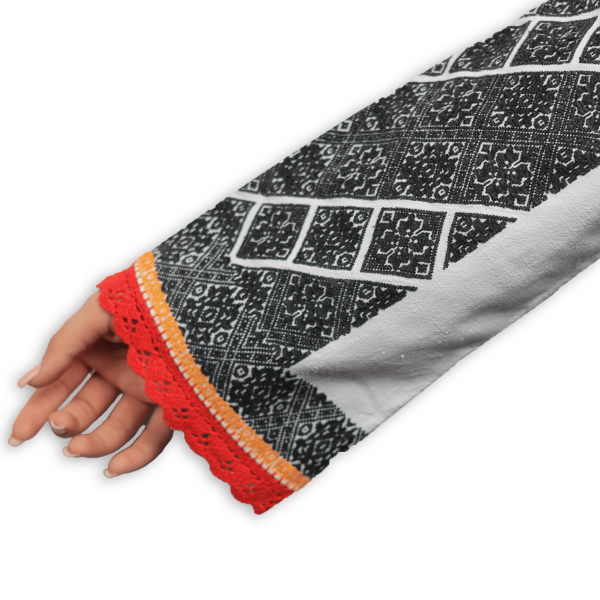 • Mânecile sunt largi, cu detalii cusute de mână, care dau eleganță acestei ii;