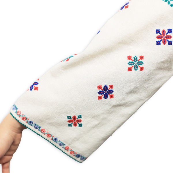 • Mânecile sunt largi, cu detalii cusute de mână, care dau eleganță acestei ii;