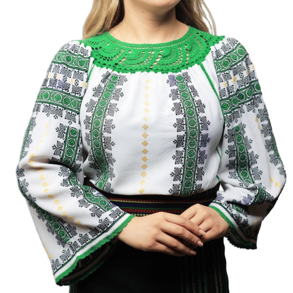 • Mânecile sunt largi, cu detalii cusute de mână, care dau eleganță acestei ii;