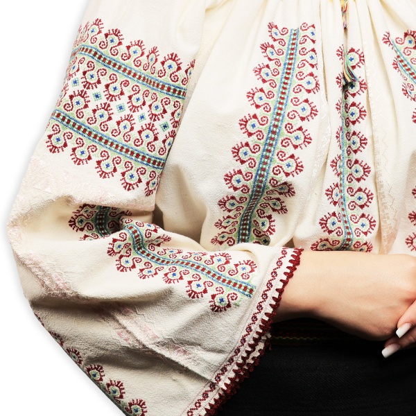 • Mânecile sunt largi, cu detalii cusute de mână, care dau eleganță acestei ii;