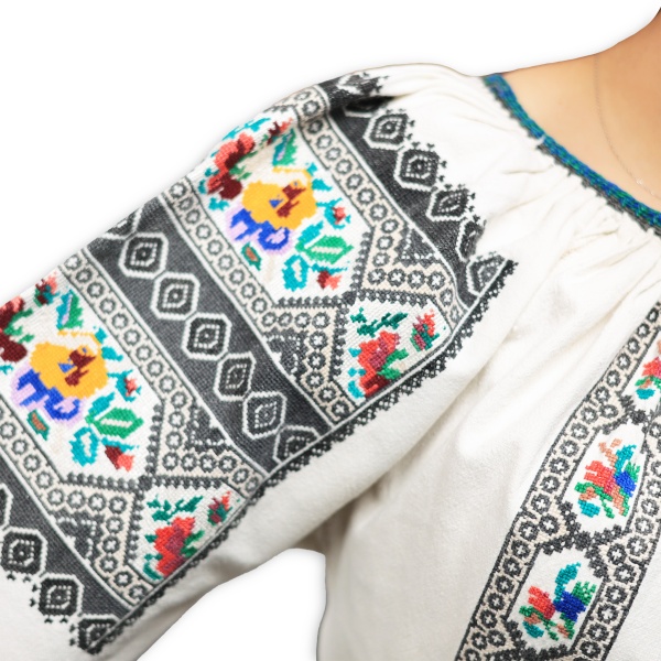 • Mânecile sunt largi, cu detalii cusute de mână, care dau eleganță acestei ii;