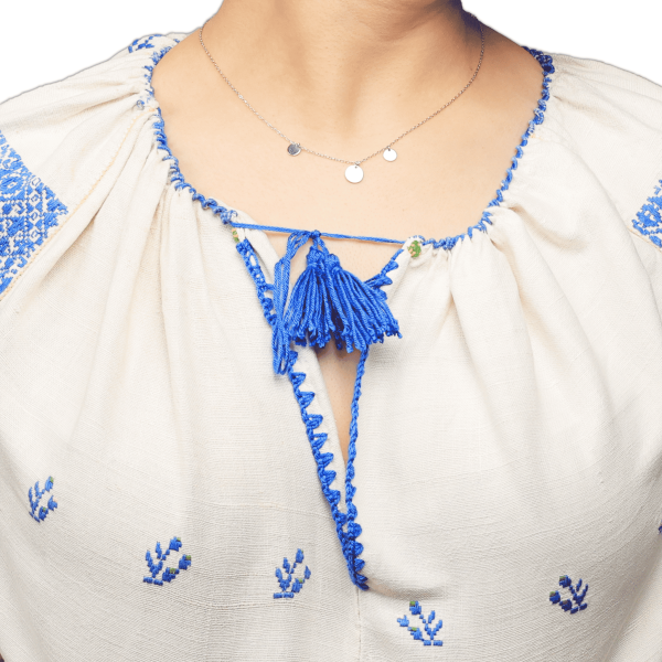 • Mânecile sunt largi, cu detalii cusute de mână, care dau eleganță acestei ii;