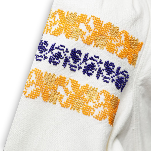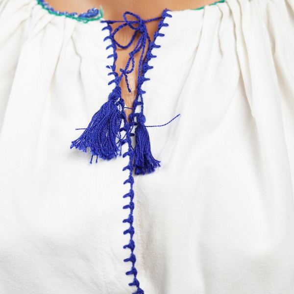 • Cămașă de damă cusută cu fir de bumbac pe pânză de in, țesut în casă;