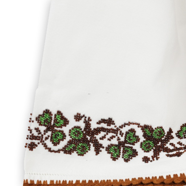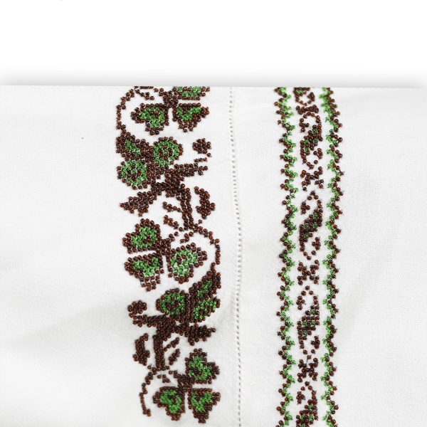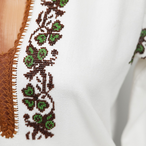 • Cămașă de damă cusută cu fir de bumbac pe pânză de in, țesut în casă;
