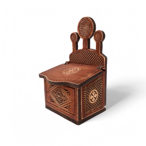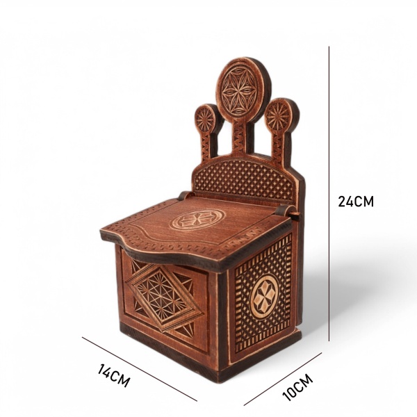 • Sculptate și gravate cu motive tradiționale inspirate din folclorul românesc, aceste piese aduc o notă distinctivă oricărui decor, fie că sunt folosite la masă sau expuse în loc de cinste.