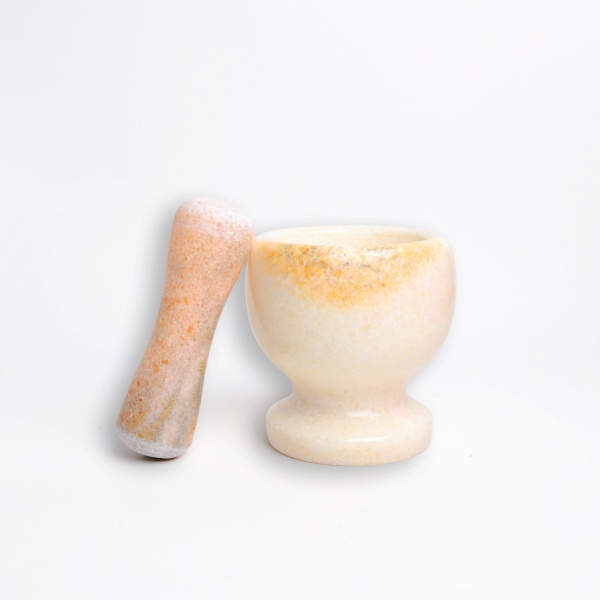 • Pistilul, realizat tot din marmură naturală, este durabil și se potrivește perfect în mojar, asigurând o măcinare eficientă și uniformă. Acest duo din marmură adaugă o notă de eleganță bucătăriei tale, fiind un accesoriu ideal pentru prepararea condimentelor și amestecului de ierburi.
