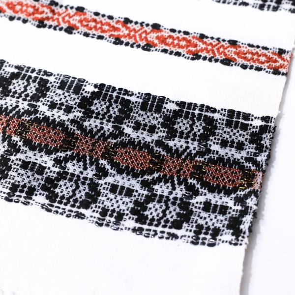 • Cusăturile în nuanțe de auriu, roșu și negru, dau o cromatică aparte acestui ștergar;