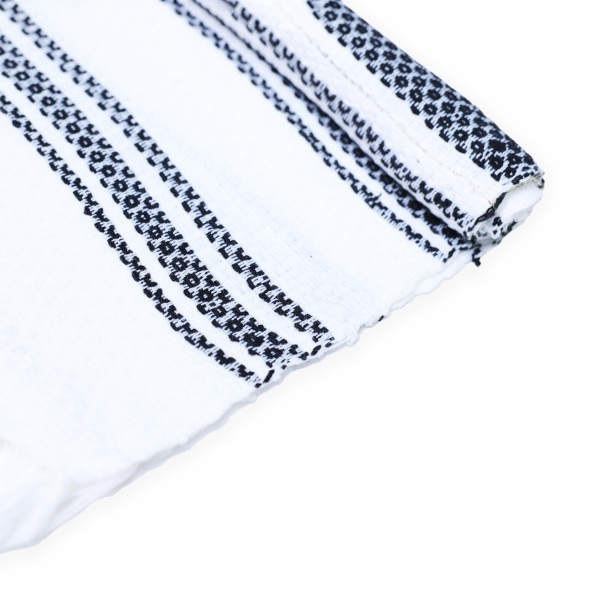 • Cusăturile în nuanțe negru, dau o cromatică aparte acestui ștergar;
