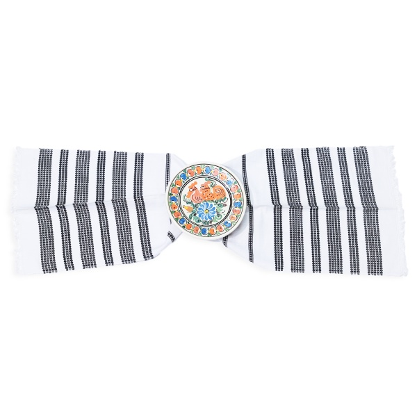 • Cusăturile în nuanțe negru, dau o cromatică aparte acestui ștergar;
