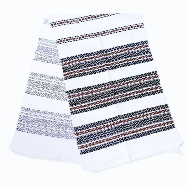 • Cusăturile în nuanțe de maro și negru, dau o cromatică aparte acestui ștergar;