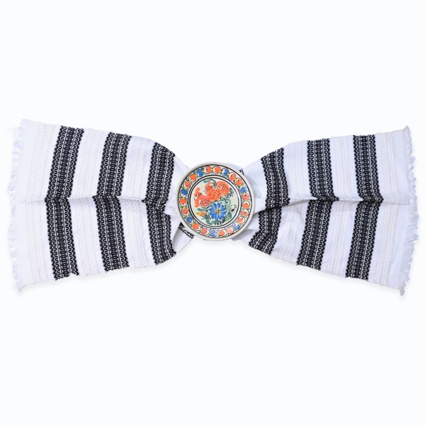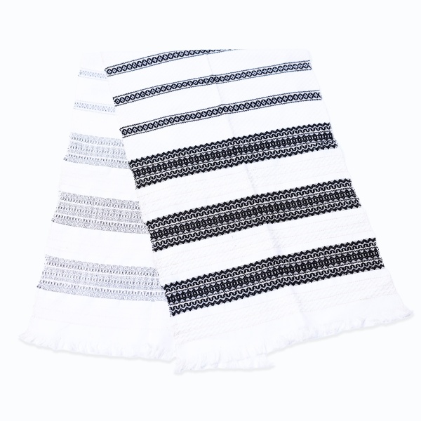 • Cusăturile în nuanțe de negru, dau o cromatică aparte acestui ștergar;