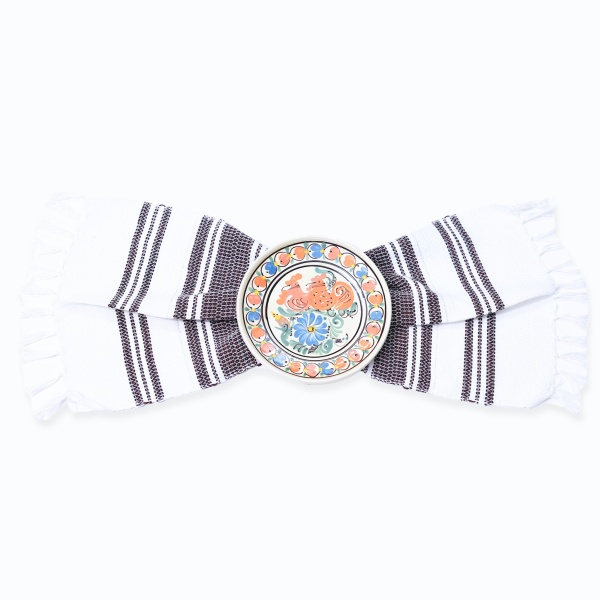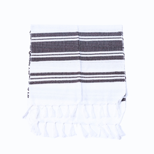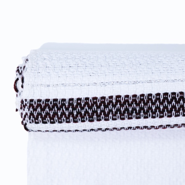 • Cusăturile în nuanțe de negru și detaliile cusute cu fir argintiu, oferă un aspect deosebit acestui ștergar;