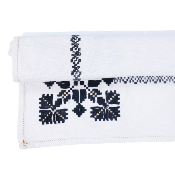 • Cusăturile în nuanțe de negru și detaliile cusute cu fir auriu, oferă un aspect deosebit acestui ștergar;