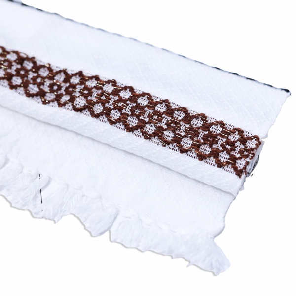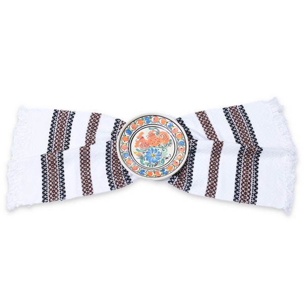 • Cusăturile în nuanțe de negru cu maro și detaliile cusute cu fir auriu, oferă un aspect deosebit acestui ștergar;